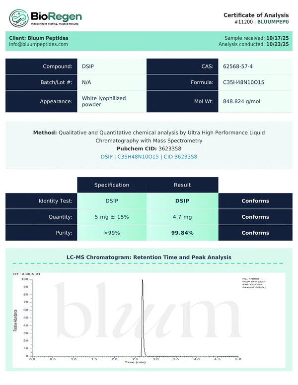 DSIP is a naturally occurring neuropeptide fragment studied in basic research settings related to cellular signaling and peptide biochemistry. This material is intended strictly for laboratory research (e.g., in vitro assays, method development). No medical, diagnostic, or veterinary applications.
